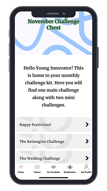 Every month a new challenge kit will drop in the app. This contains one main challenge and two mini challenges. Your child will dive into a hands-on challenge that will spark their creativity, amp up their critical thinking, and supercharge their problem-solving skills. Think of it as a workout for their brain!