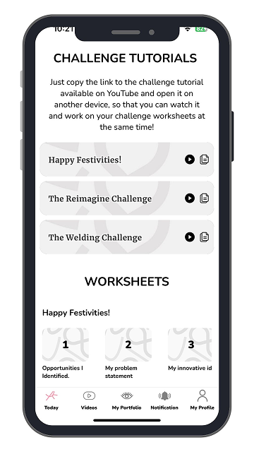 Our app gives them the challenge and then gets out of their way. Kids pick up a pencil to sketch out their innovations and go on to build their prototypes.